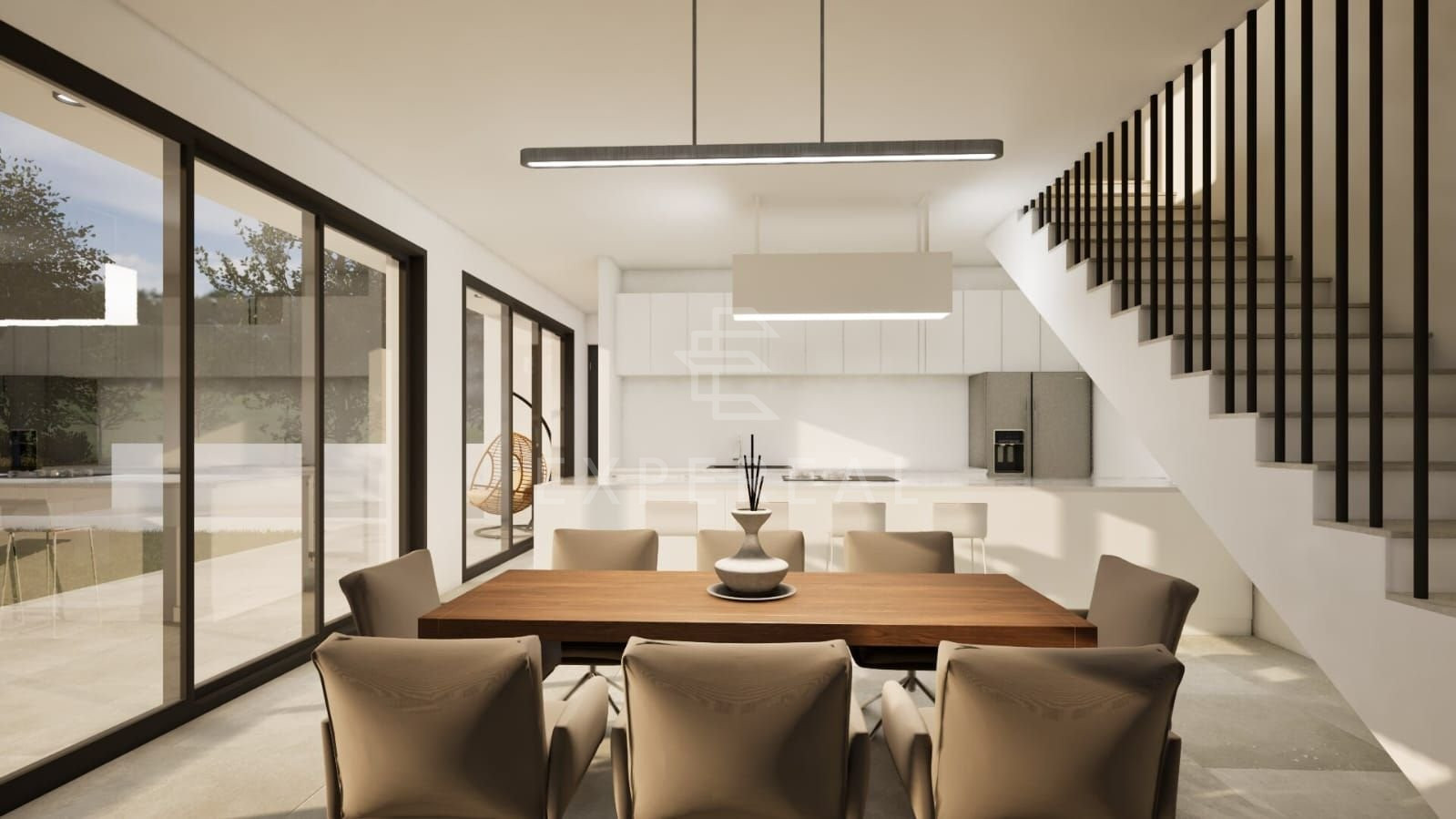 Στο πρώτο επίπεδο βρίσκεται το σαλόνι, η τραπεζαρία, η κουζίνα και η αυλή, ενώ στο δεύτερο επίπεδο βρίσκονται τα υπνοδωμάτια.