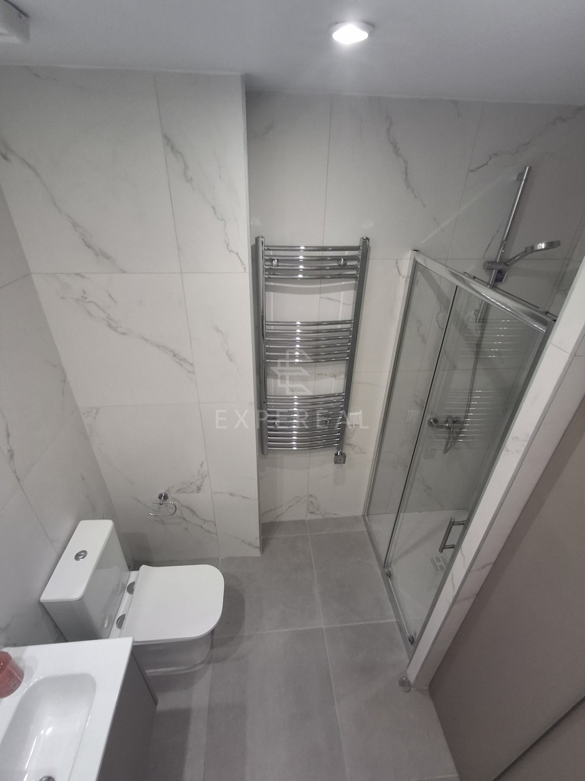 The flat includes of all the electrical appliances, such as oven, fridge, washing machine, a W.C. with shower, air conditioning in all areas, a double bed, dining table with chairs, a sofa, water pressure, solar, storage and a private covered parking space.