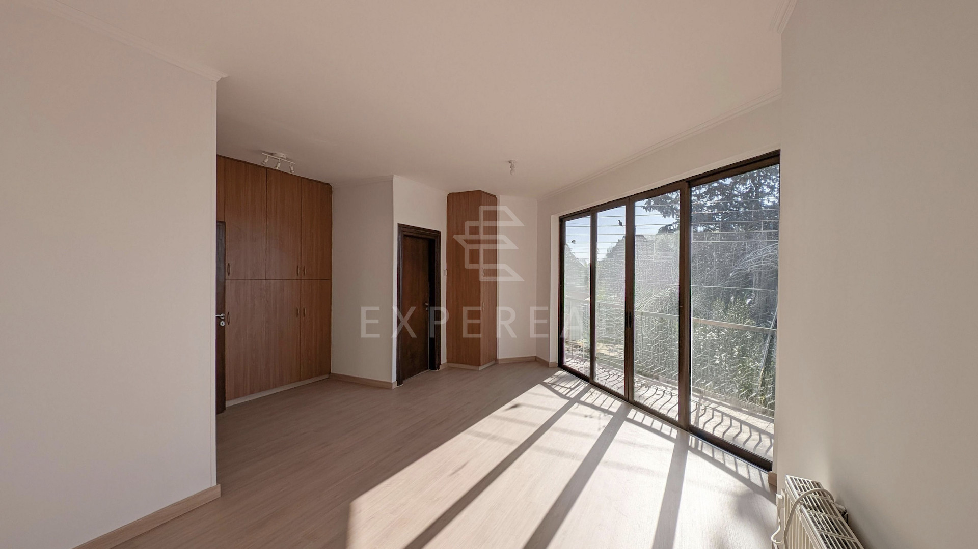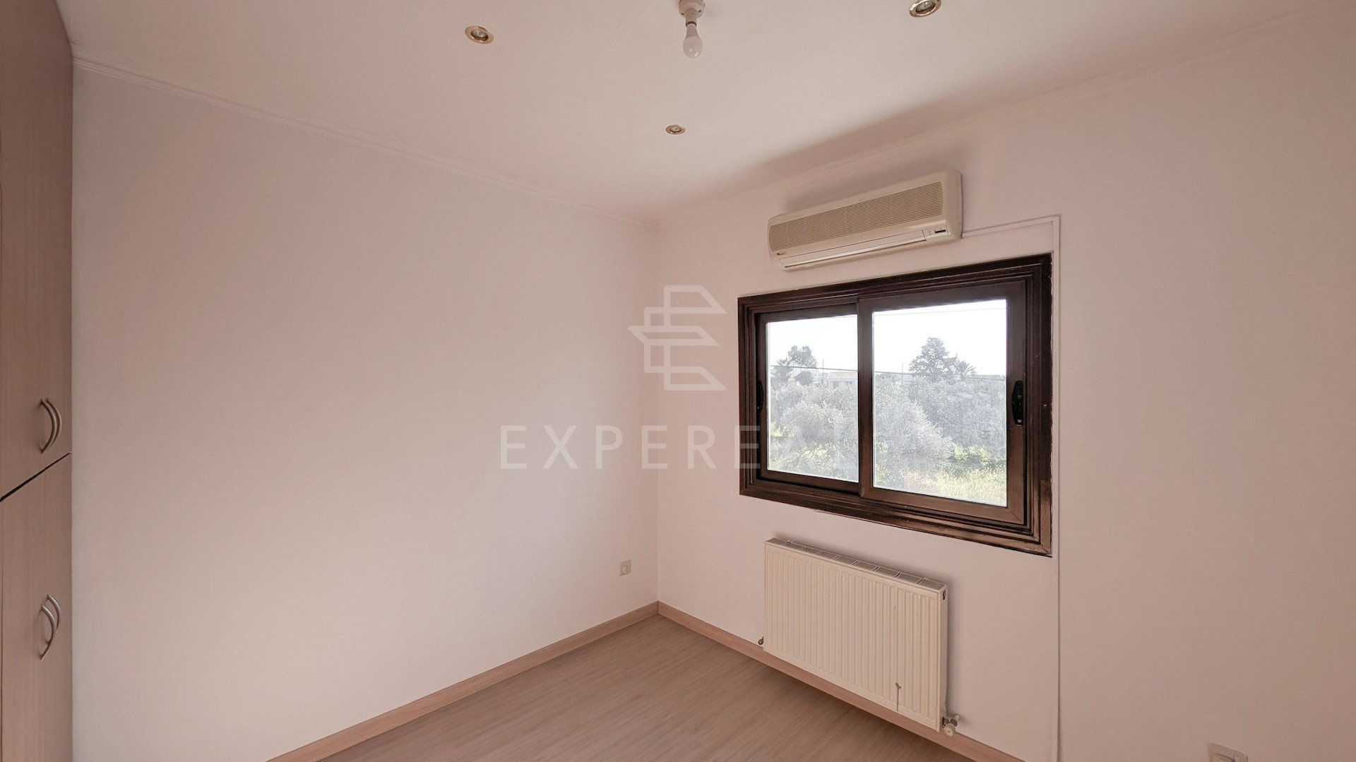 On the first level are two living rooms, dining room, kitchen, guest wc and yard, while on the second level are the bedrooms, one bathroom, an en-suite shower in the master bedroom, central heating, air conditions all over, while it includes a covered veranda, a garden with a courtyard, and a covered parking space.